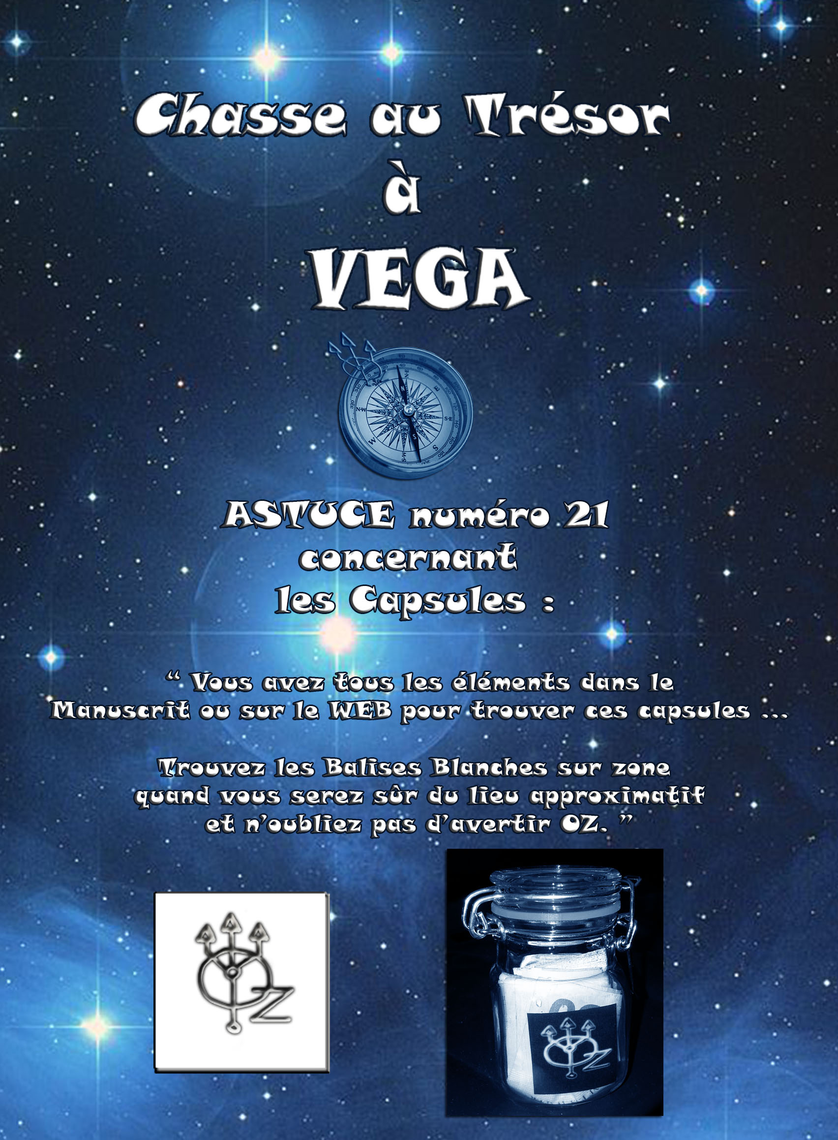 Une petite précision sur les Capsules est donnée sur l'Astuce 21 car beaucoup pensent qu'il y'a des éléments à trouver sur zone (ou d'autres énigmes) pour trouver les capsules alors que cela est faux ... par contre, n'oubliez pas d'avertir OZ.